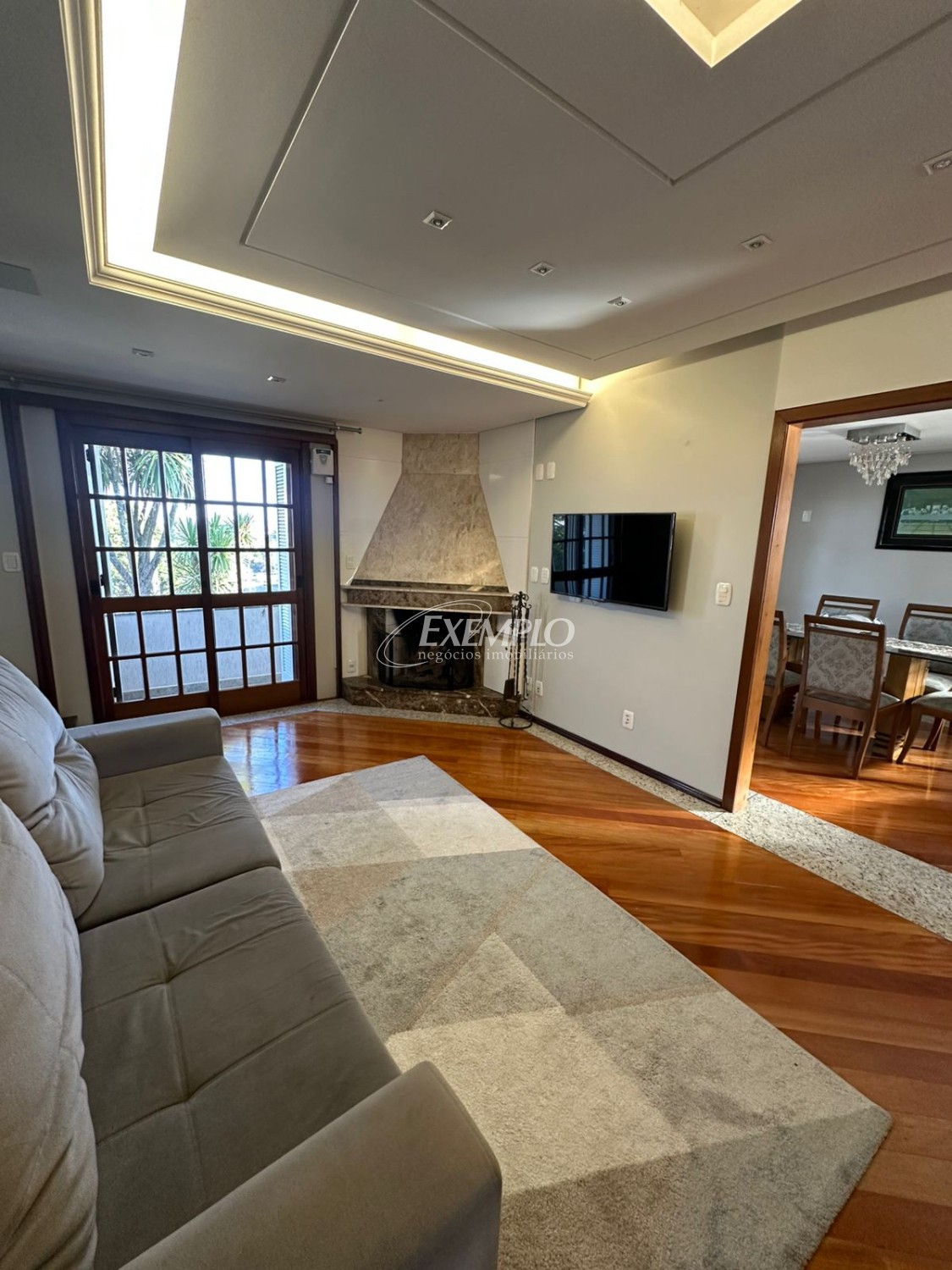 Amplo living com lareira, proporcionando um ambiente aconchegante e elegante.